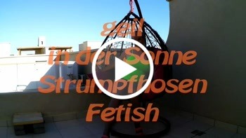 ahhh was für ein geiler Tag, erstmal geil nur mit der Strumofhose auf die Terrasse, hihi zwischen den Beinen würde es richtig heiss…also erst mal ein Loch gemacht das die Muschi Luftbekommt